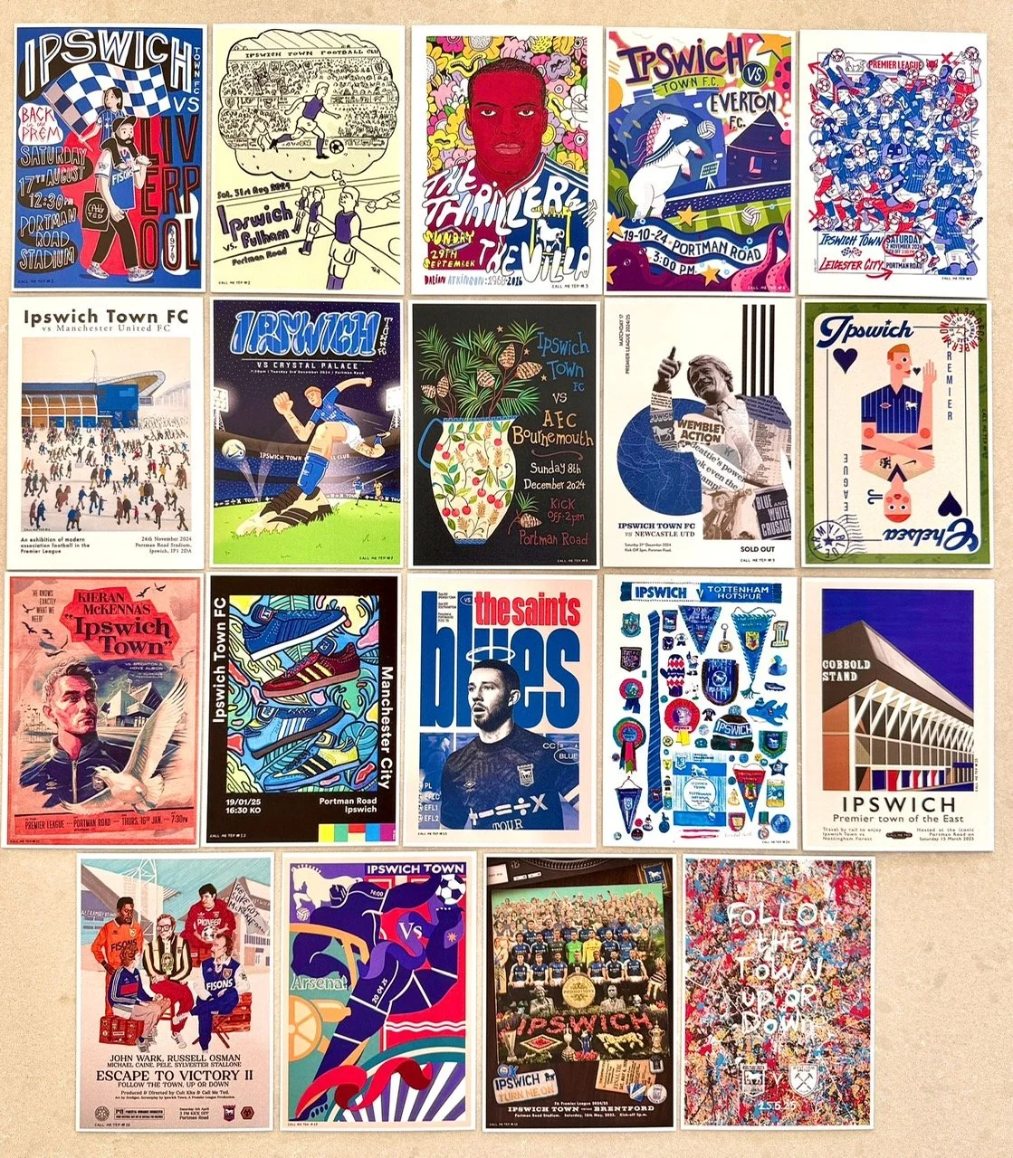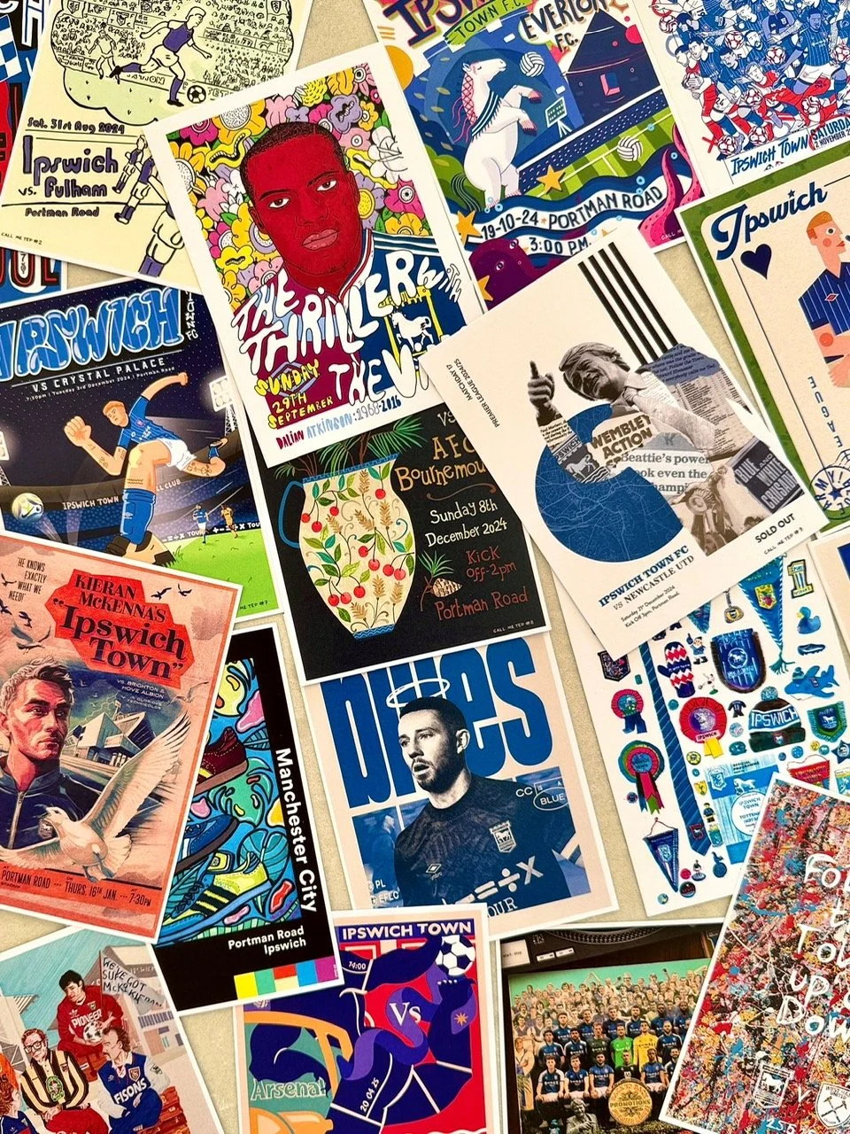 Call Me Ted x Mark Johnson: Limited edition Bryan Gunn art print £12.00 Call Me Ted x Mark Johnson: Limited edition Marcelino Nunez art print £12.00 Call Me Ted x Mark Johnson: Limited edition Danny Haynes art print £12.00 Call Me Ted x Mark Johnson: Limited edition Jaden Philogene art print £12.00 Call Me Ted x Mark Johnson: Limited edition Alex Mathie art print £12.00 Call Me Ted x Mark Johnson sticker sheet £8.00 Call Me Ted x Mark Johnson postcard set £12.00 Ipswich Town v Norwich City by Mark Johnson £15.00 Blue Through and Through by Sam Peet £15.00 Call Me Ted postcard set £30.00 Ipswich Town v West Ham United by Ed Sheeran from £15.00 Ipswich Town v Brentford by Dan Thomas A3 version (unsigned) £15.00 Ipswich Town v Brentford by Dan Thomas 12" version (unsigned) £15.00 Ipswich Town v Arsenal by Kelly Anna (unsigned) from £15.00 Ipswich Town v Wolves by Cult Kits v Zooligan (unsigned) from £15.00 Ipswich Town v Nottingham Forest by Kate Jackson (unsigned) £15.00 Ipswich Town v Tottenham Hotspur by Annabel Pearl (unsigned) from £15.00 Ipswich Town v Southampton by Matt Smith and Andrew Kitchener (unsigned) £15.00 Ipswich Town v Manchester City by Lily Hammond (unsigned) £15.00 Ipswich Town v Brighton & Hove Albion by Jamie Eke (unsigned) from £15.00 Ipswich Town v Chelsea by James Treadaway (unsigned) from £15.00 Ipswich Town v Newcastle United by James Hobson (unsigned) from £15.00 Ipswich Town v Bournemouth by Brie Harrison (unsigned) from £15.00 Ipswich Town v Crystal Palace by John Barrett from £15.00 Ipswich Town v Manchester United by Simon Farr (unsigned) £15.00 Ipswich Town v Fulham by Tom Armstrong (unsigned) from £15.00 Ipswich Town v Leicester City by Sam Peet (unsigned) £15.00 Ipswich Town v Aston Villa by Joel Millerchip (unsigned) from £15.00 Ipswich v Everton by Catalina Carvajal (white horse, unsigned) from £15.00 Ipswich Town v Liverpool by Go Bernard £15.00